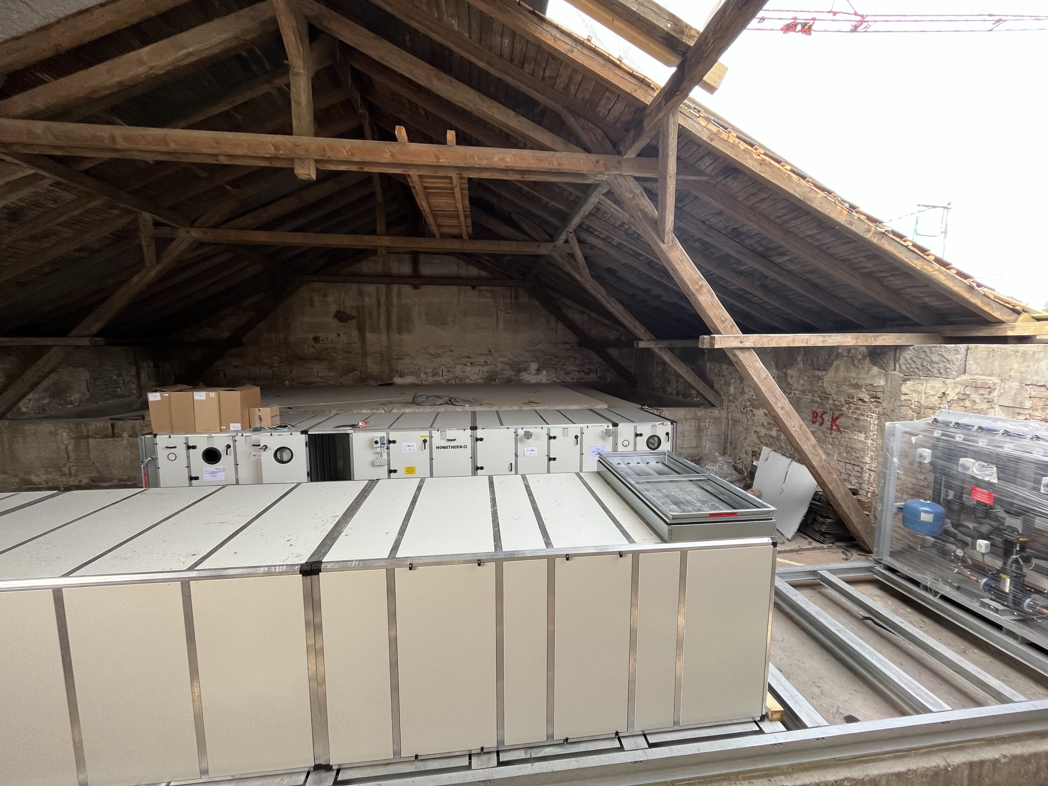 Insgesamt werden nach Projektabschluss ca. 86.000m3/h über neue Lüftungsgeräte mit hocheffizienten Wärmerückgewinnungen das Gebäude mit Frischluft versorgen und Ihren Beitrag zu hoher Energieeffizienz leisten. Wir dürfen bei diesem spannenden Projekt die gesamte TGA planen und in der Umsetzung überwachen.