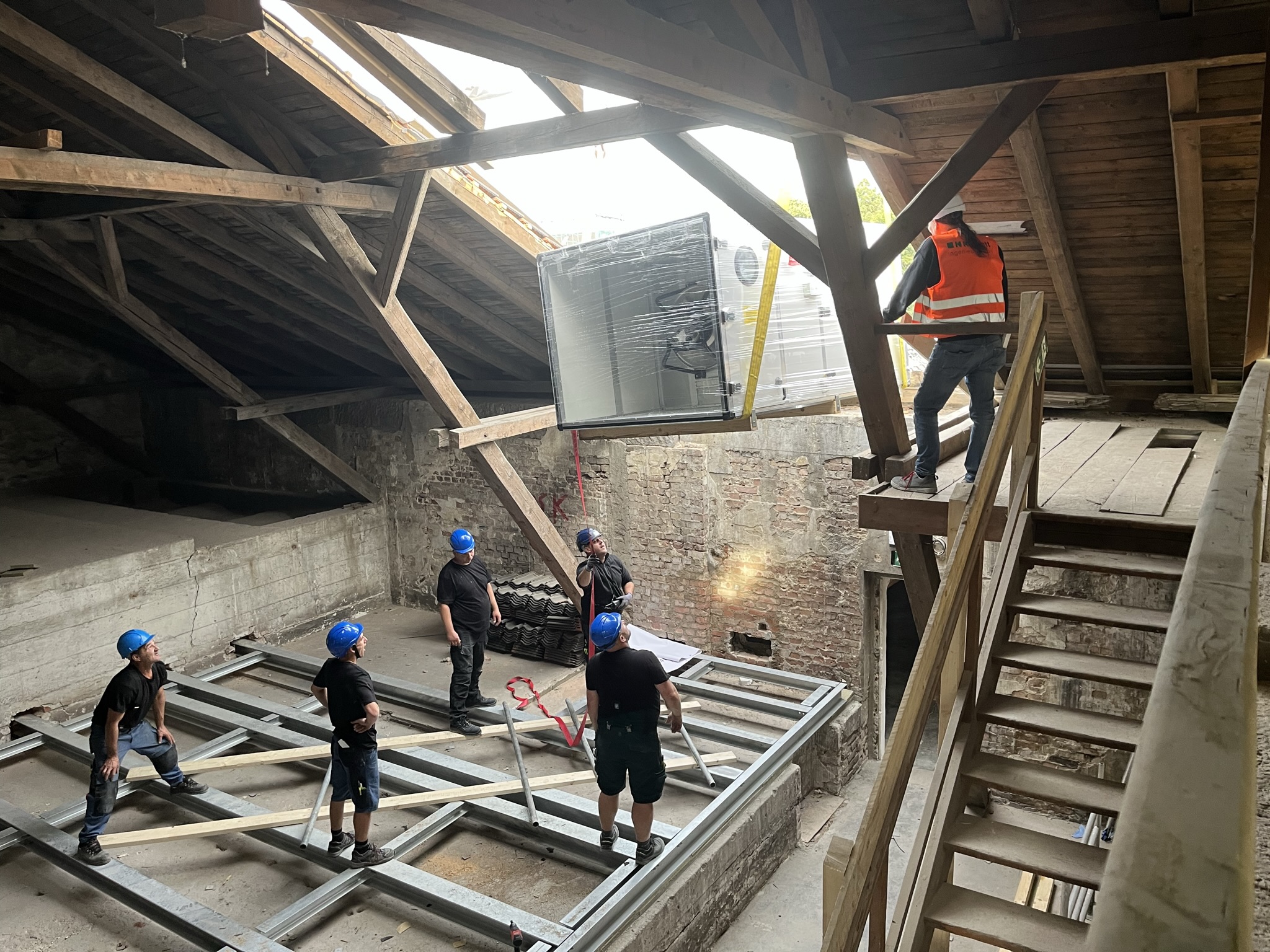 In unserem Projekt "Neugestaltung des Kurhaus Aachen“ war gestern ein spannender Baustellentag: Ein neues Lüftungsgerät mit ca. 11.800 m3/h Frischluft zur Versorgung diverser Veranstaltungsbereiche wurde in das Gebäude eingebracht.