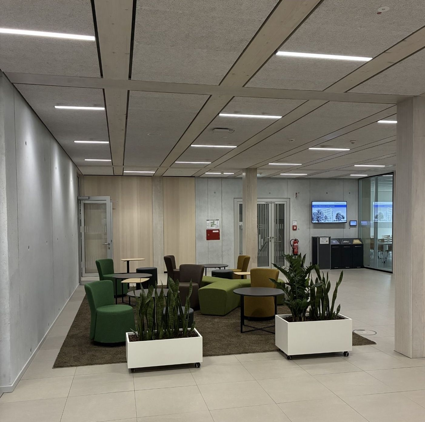 und Lüftung nur im Bedarf laufen. Den verbleibenden Wärmebedarf deckt Fernwärme und die auf dem begrünten Dach befindliche Photovoltaikanlage.