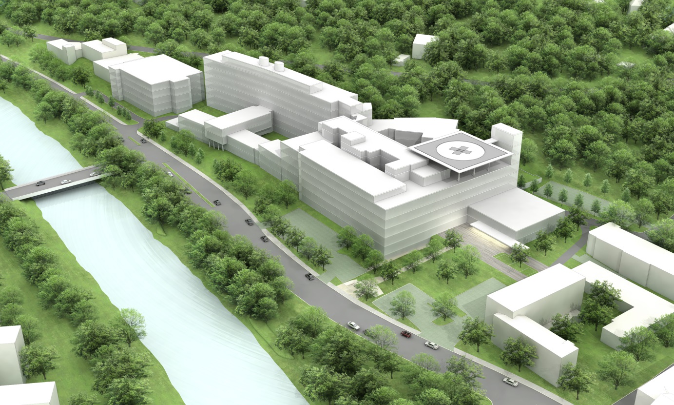 Erweiterung und Modernisierung des Klinikums in 3 größere Bauabschnitten: Erweiterungsneubau einschl. Hubschrauberlandeplatz, Sanierung und Aufstockung eines Bettenhauses, Umbau / Sanierung des restlichen Klinikums Komplexes in kleineren Bauabschnitten.